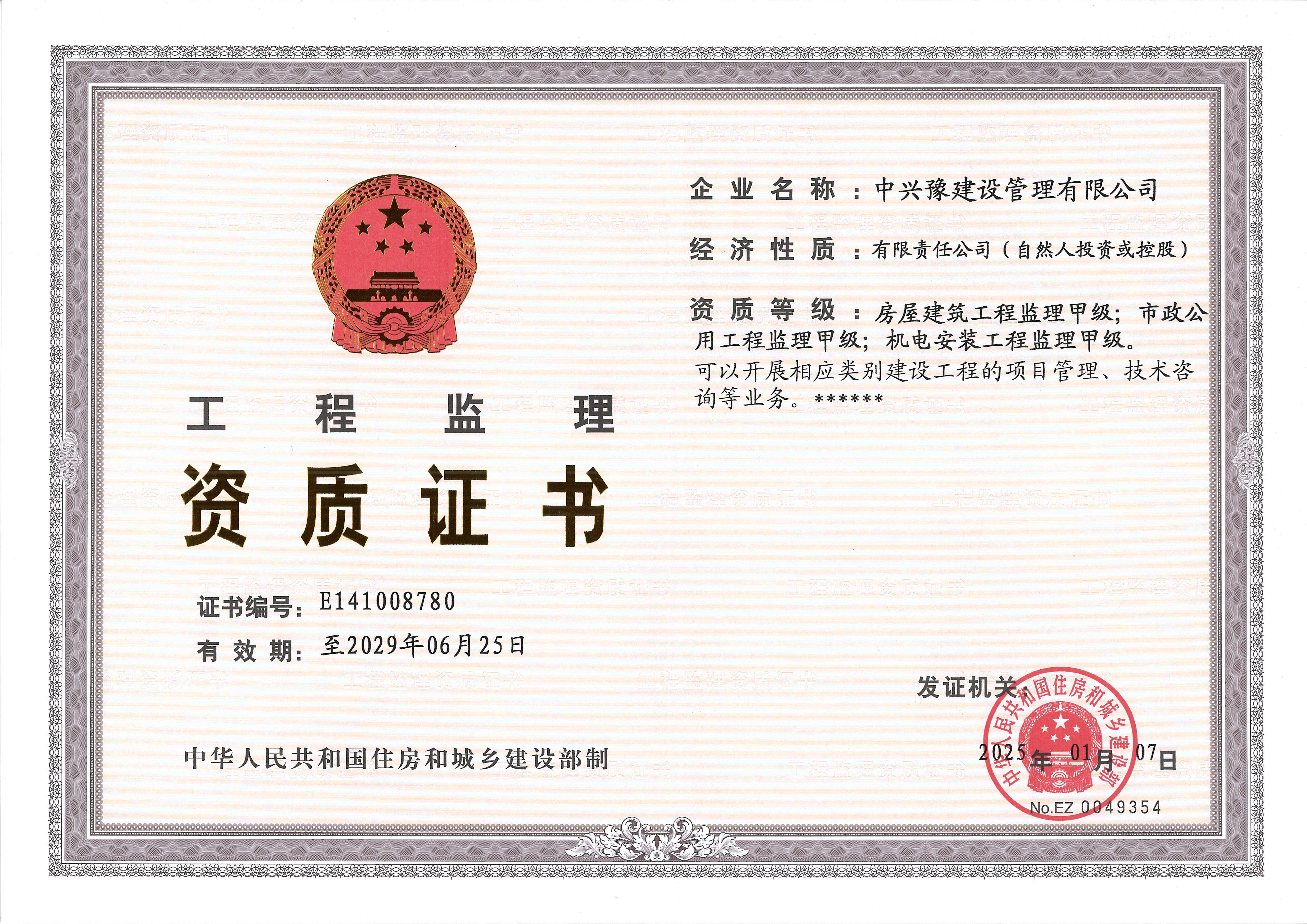 甲級房屋建筑、市政、機電安裝工程監(jiān)理-公司資質(zhì)